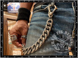 ブレスレットとして滑らかに接続されているチェーンなので、ウォレットチェーンとしても機能することでしょう。この上なくヘヴィで頑丈なウォレットチェーンになりそうです。ちなみにロンドンでは極太のネックレスとして注文された強者のお客様もいらっしゃるそうです。