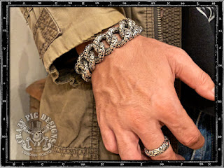 残念ながら写真だけではどのくらい太く迫力がありヘヴィなのかが伝わりにくいかもしれません。このような時勢でまだまだ外出が躊躇われますが、クレイジーピッグではこちらのブレスレットの現物を展示販売しておりますので、機会がありましたら是非この極太ヘヴィブレスレットを手に取り、その素晴らしさをご実感ください。(売り切れの場合もありますので、事前に「お問い合わせフォーム」等で在庫の有無をご確認いただけると幸いです)